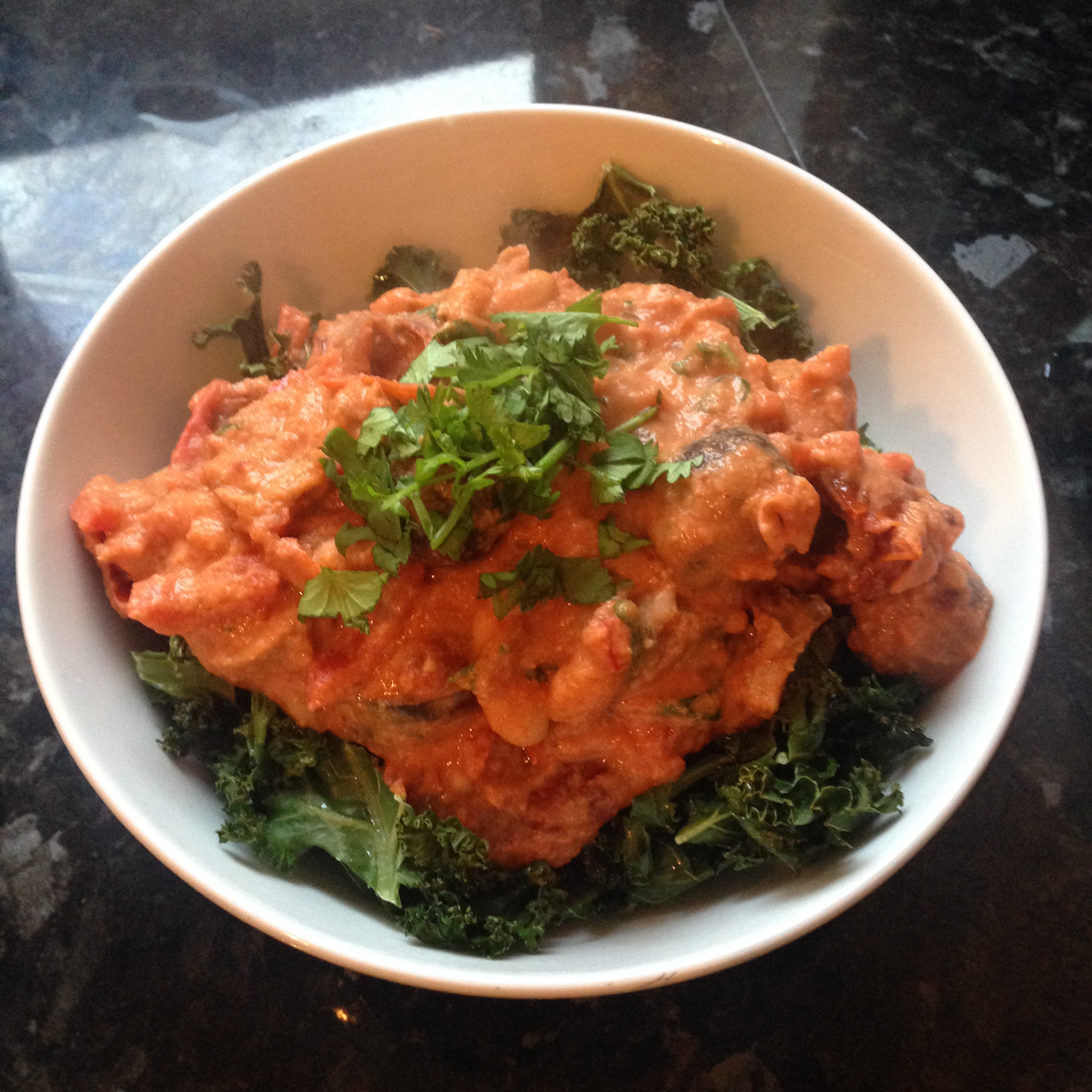 I served mine on a bed of crispy kale or if you fancy something even more filling then serve it with brown rice or quinoa although don’t forget you are getting carbs from the beans.
