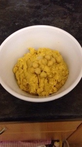 – Mash the banana in a bowl and in a separate bowl add the rest of the ingredients (apart from the toppings of course.)